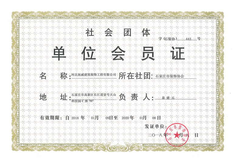 旭威公司主营业务包括:建筑装饰装修,防水防腐保温,建筑安装,园林绿化等工程的设计及施工,并销售装饰材料、防水材料等。多年来一直是天山地产、格力电气等多家大型企业集团的战略合作伙伴,更在2017年成为河北省石家庄市装饰协会副会长企业,被业界誉为“诚信企业”。