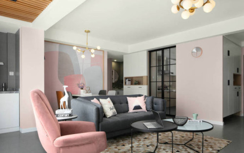 现代简约风家居,甜蜜粉与水泥灰的碰撞。