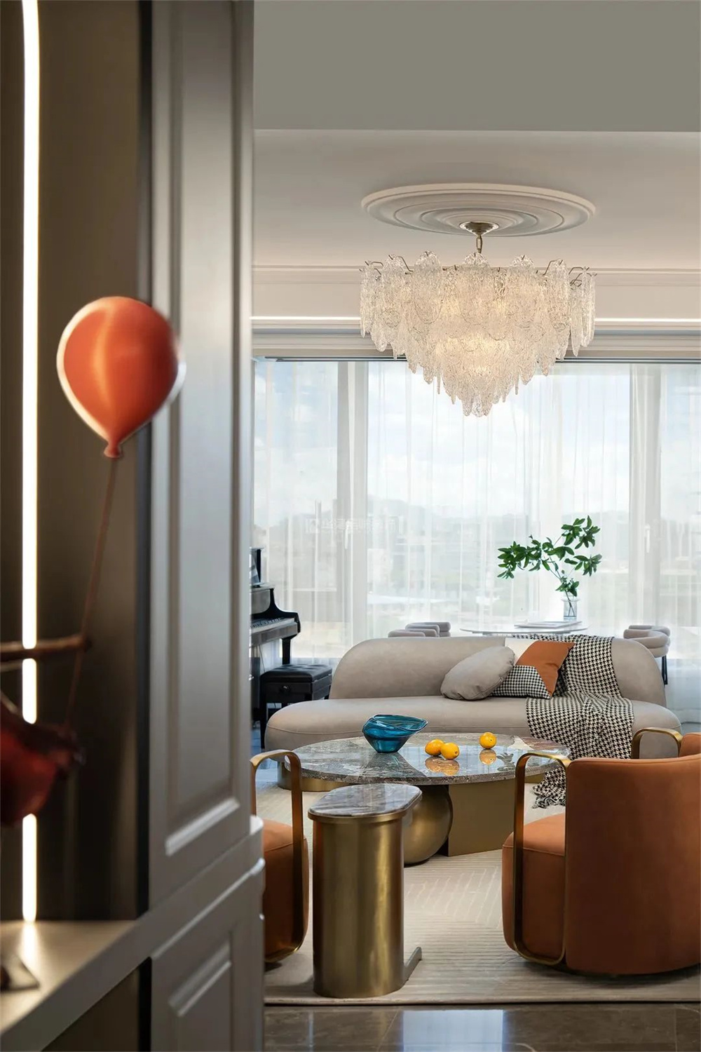 干净利落的“以小撞大”,是空间的“点睛之笔”,一点小心机就能为家带来与众不同的个性。比如鲜明的橙、红单品,甚至只是小小的吊灯、摆件,都能为空间注入时尚活跃的气息。