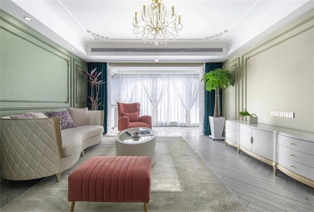 在轻快的薄荷绿与温馨的肉桂粉组合下,轻法式的温柔随之而来,家呈现出森系童话氛围。