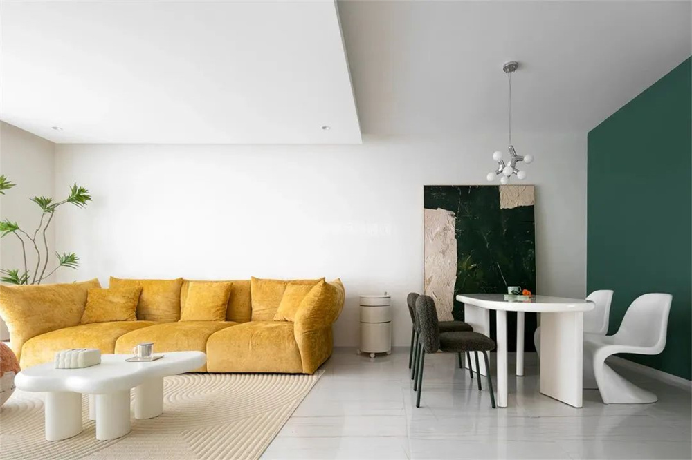 又比如明黄色与绿色,在弧形家具的烘托下,清新、生动的空间感扑面而来。